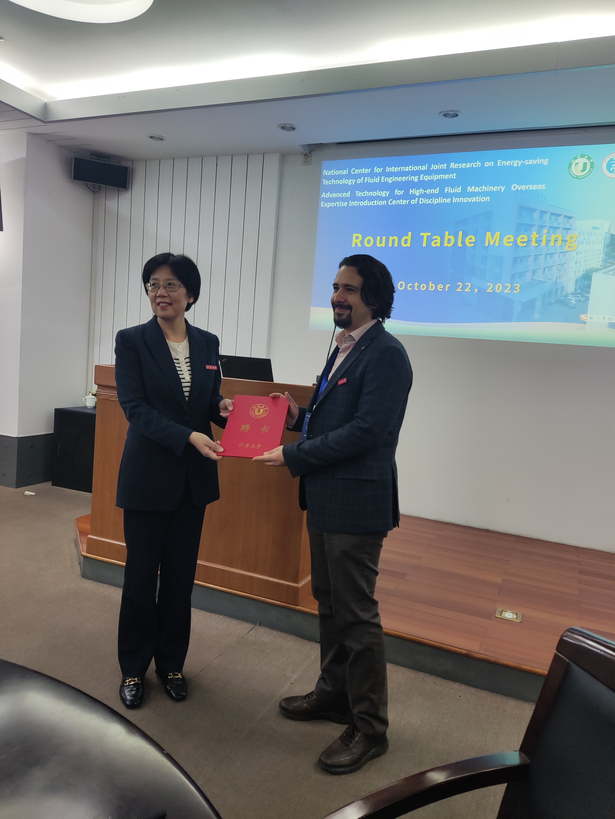 首先,李红致欢迎词,她真挚欢迎各位专家百忙中莅临本次会议,衷心感谢各位专家长期以来对52AV 国家水泵及系统工程技术研究中心及国际合作平台建设的关心和支持,希望大家为工程中心的发展继续出谋划策,对学科和行业发展提出好的建议。随后举行客座教授受聘仪式,李红代表学校为七位新聘客座教授颁发聘书并合影留念。