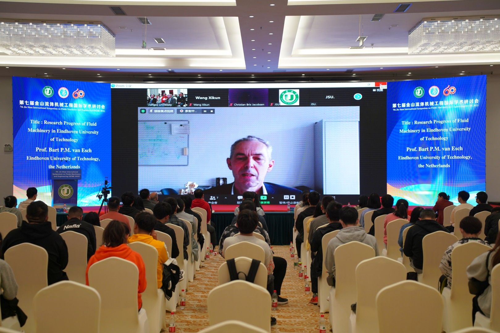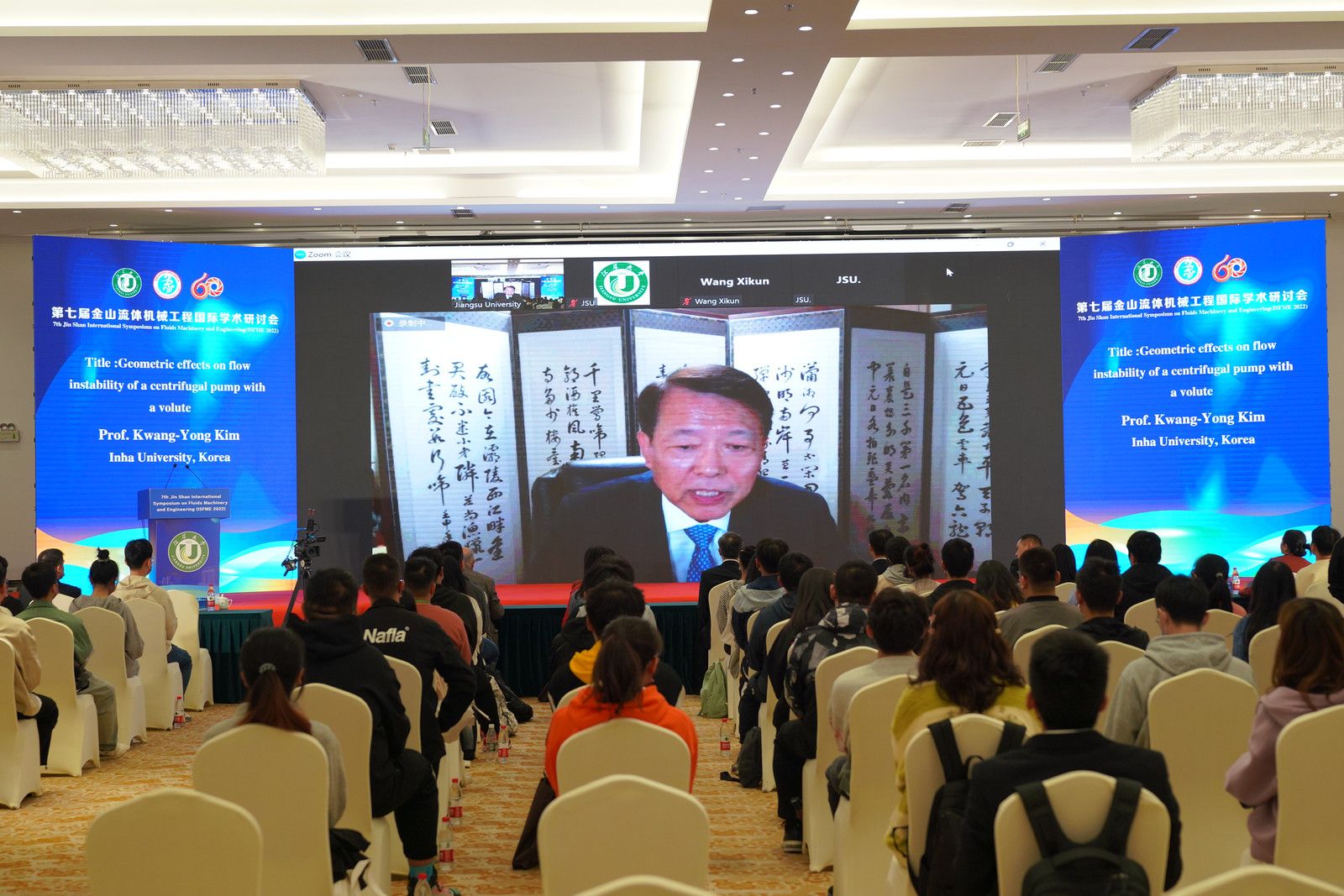 袁寿其在致辞中表示,金山流体机械工程国际学术研讨会是本领域的重要学术交流平台,是国际交流与合作的重要契机,非常高兴地看到许多国内青年教师、工程师、博士生和硕士生在线上和线下参与本次研讨会。特邀的学术报告涵盖了流体机械和相关工程领域的最新实践和科研进展。他代表组委会向本次研讨会的所有参会者致以热烈的问候,并希望第七届金山流体机械工程国际学术研讨会取得圆满成功。
