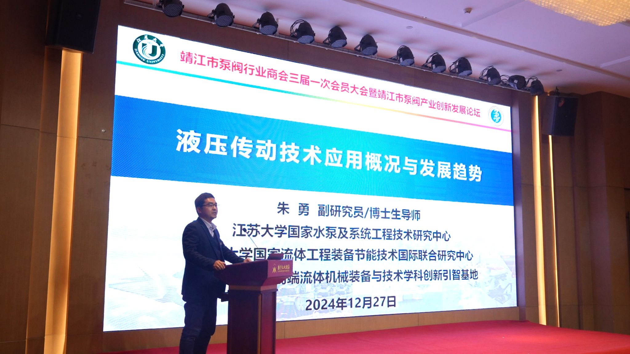 Zhu Yong presented a report titled "Applications and Development Trends of Hydraulic Transmission Technology," introducing the application fields of hydraulic transmission technologies, their development overview, global and domestic industrial layouts of key enterprises, and industry trends. Zhu emphasized the importance of leveraging complementary advantages between universities and local industries to foster collaborative innovation and mutual benefits. He called for strengthening multi-dimensional collaborations among government, industry, academia, research, and application to transform scientific research into local industrial advantages, thereby supporting the high-quality development of Jingjiang’s pump and valve industry.