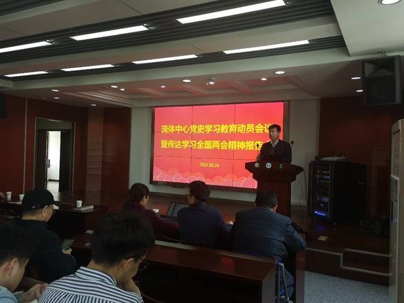 In the afternoon of March 24, Education mobilization meeting for learning history of CPC, namely the report on the spirit of the NPC and CPPCC was convened at the conference room at  our center. Member of the National Committee of the Chinese people's Political Consultative Conference, principal of Nantong University, Prof. Weidong Shi was invited to give the report. Desheng Zhang (Secretary of the Party Committee of our center), Wei Li (Director of mechanical and electrical factory) and all the party members attended the meeting. The meeting was hosted by Desheng Zhang.