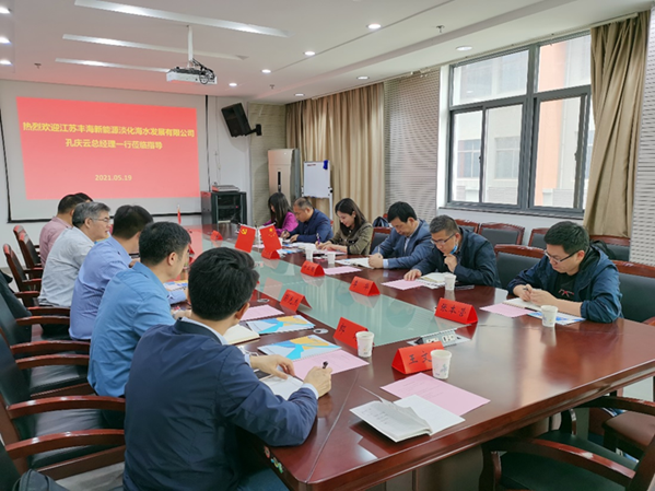 On May 19, Kong Qingyun, the general manager of Jiangsu Fenghai New Energy Seawater Desalination Development Co., Ltd., Xu Weiguo, deputy general manager, Wang FUJIA, manager of technology research and development department, and Li Hua, desalination engineer, visited the National Pump and System Engineering Technology Research Center of Jiangsu University. Party secretary of Jiangsu University Yuan Shouqi, party Secretary of our center Zhang Desheng, director yuan Jianping, deputy director Pei Ji, deputy director Peng Guangjie and other notable leaders and teacher representatives graced the research meeting, presided over by Zhang Desheng.